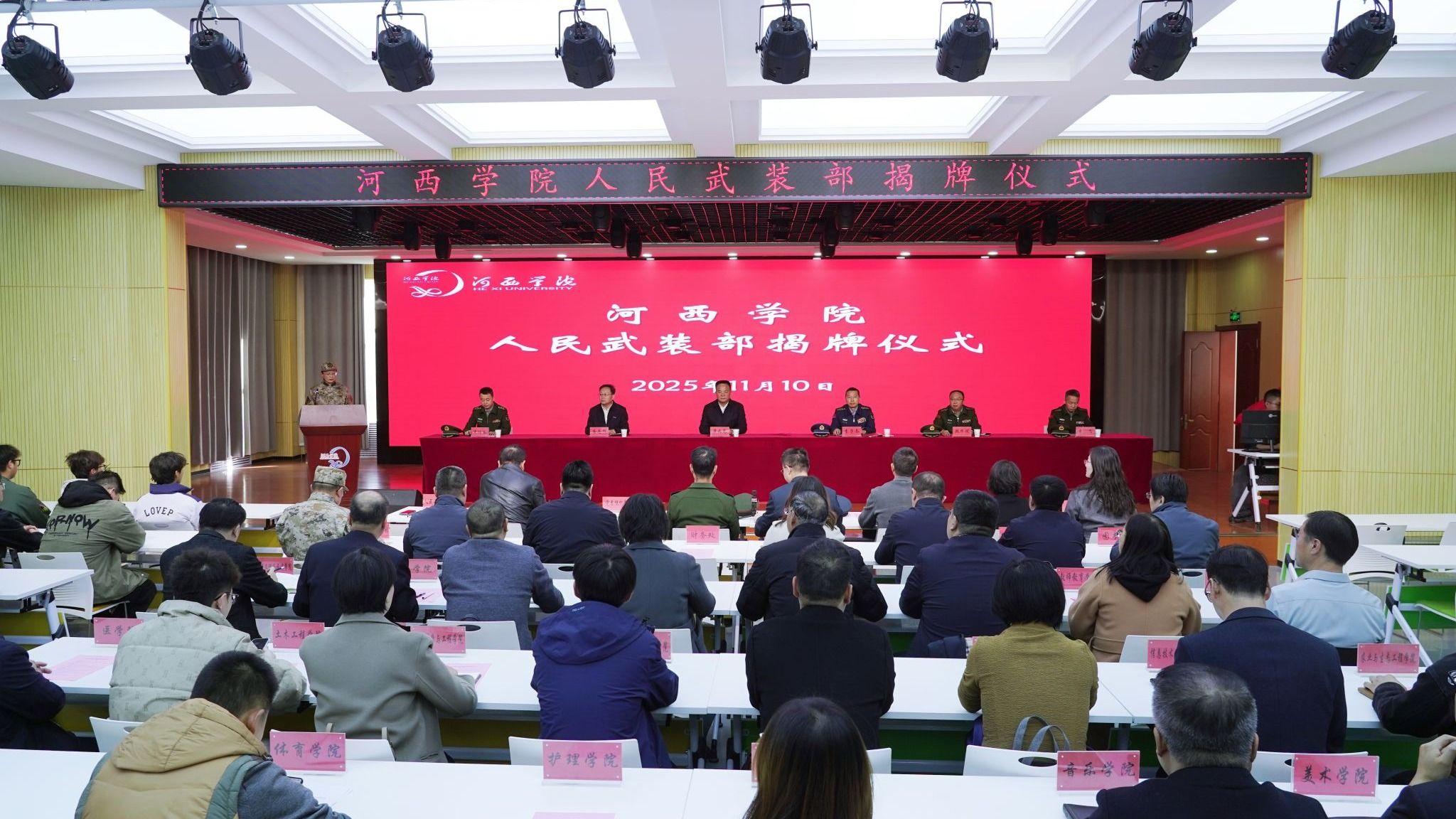 11月10日,河西学院人民武装部揭牌仪式在学生发展中心四楼多功能厅举行。张掖军分区大校司令员李子冬、学校党委书记梁兆光、张掖军分区动员处上校处长魏辉明、甘州区人民武装部上校政治委员李飞出席。学校党委常委、副校长唐志强致辞。仪式在庄严的国歌声中拉开序幕。魏辉明宣读了关于成立河西学院人民武装部的批复及相关干部任命文件。李子冬与梁兆光为河西学院人民武装部揭牌。唐志强在致辞中回顾了学校近年国防教育的成效与武装部建设情况,...