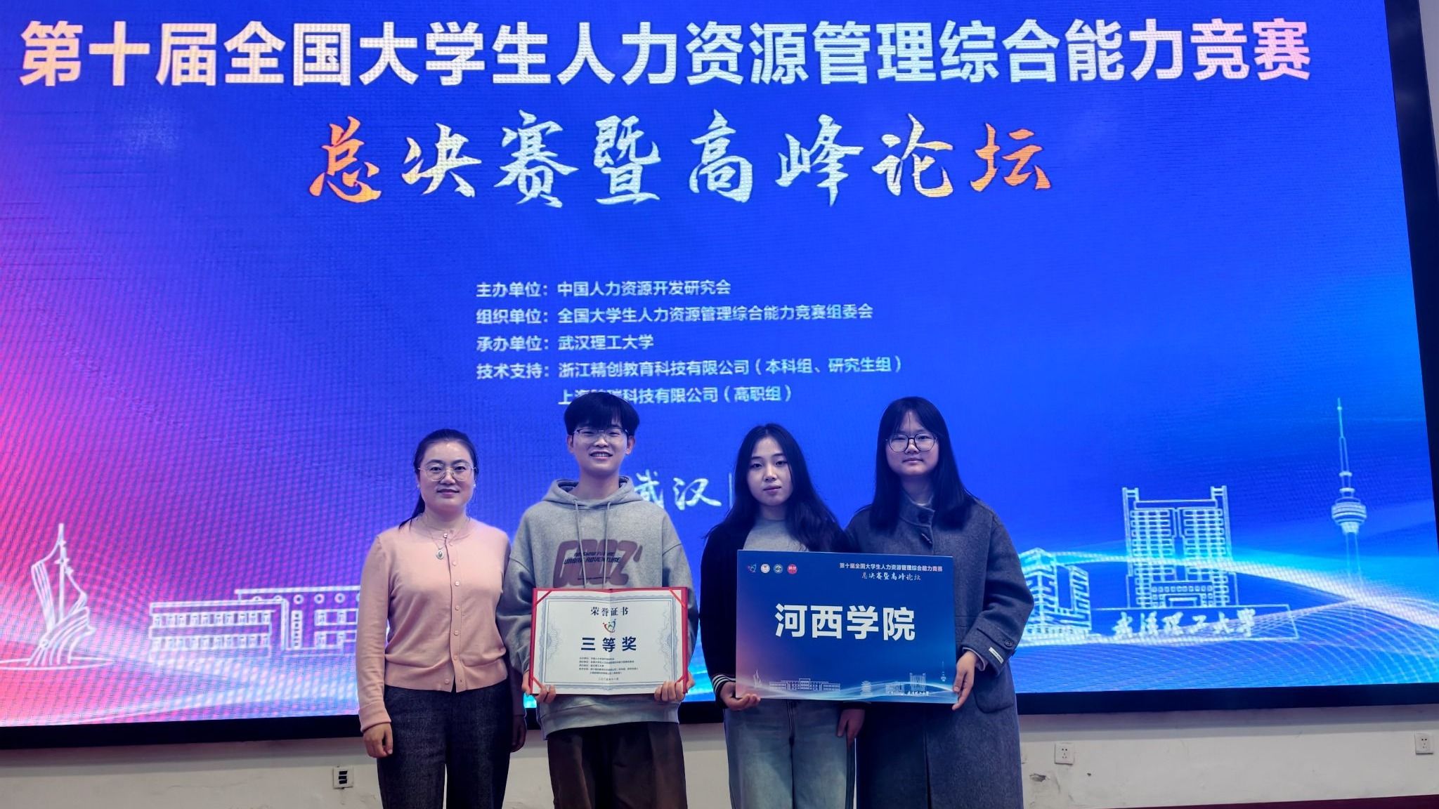 11月8日至9日,由中国人力资源开发研究会主办,武汉理工大学承办的第十届全国大学生人力资源管理综合能力竞赛总决赛暨高峰论坛在武汉理工大学举办。我校经济管理学院选派的参赛队伍荣获大赛三等奖,充分展现了河西学子的综合实力与团队风采。