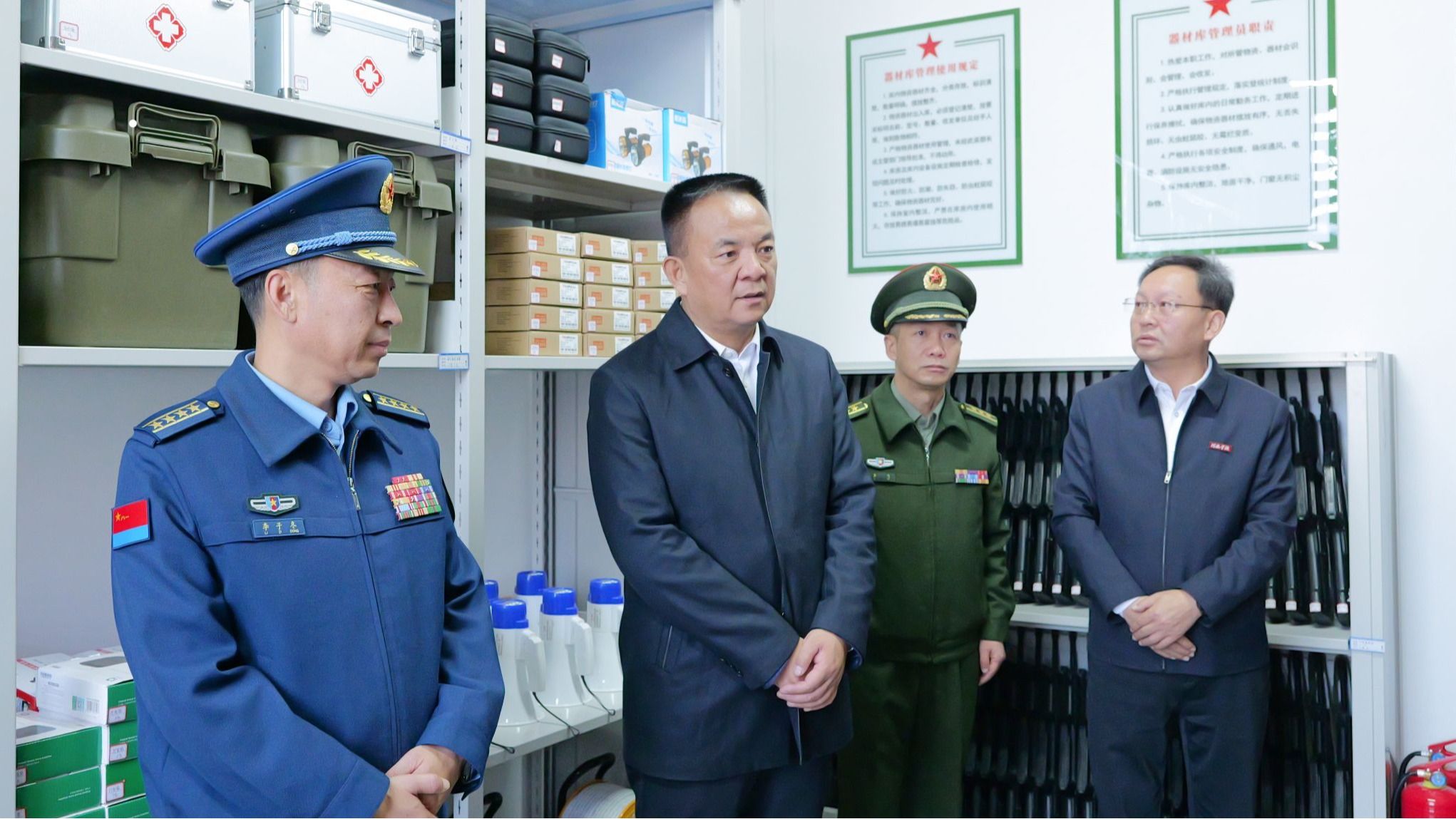 仪式结束后,与会领导现场指导学校人民武装部建设情况。