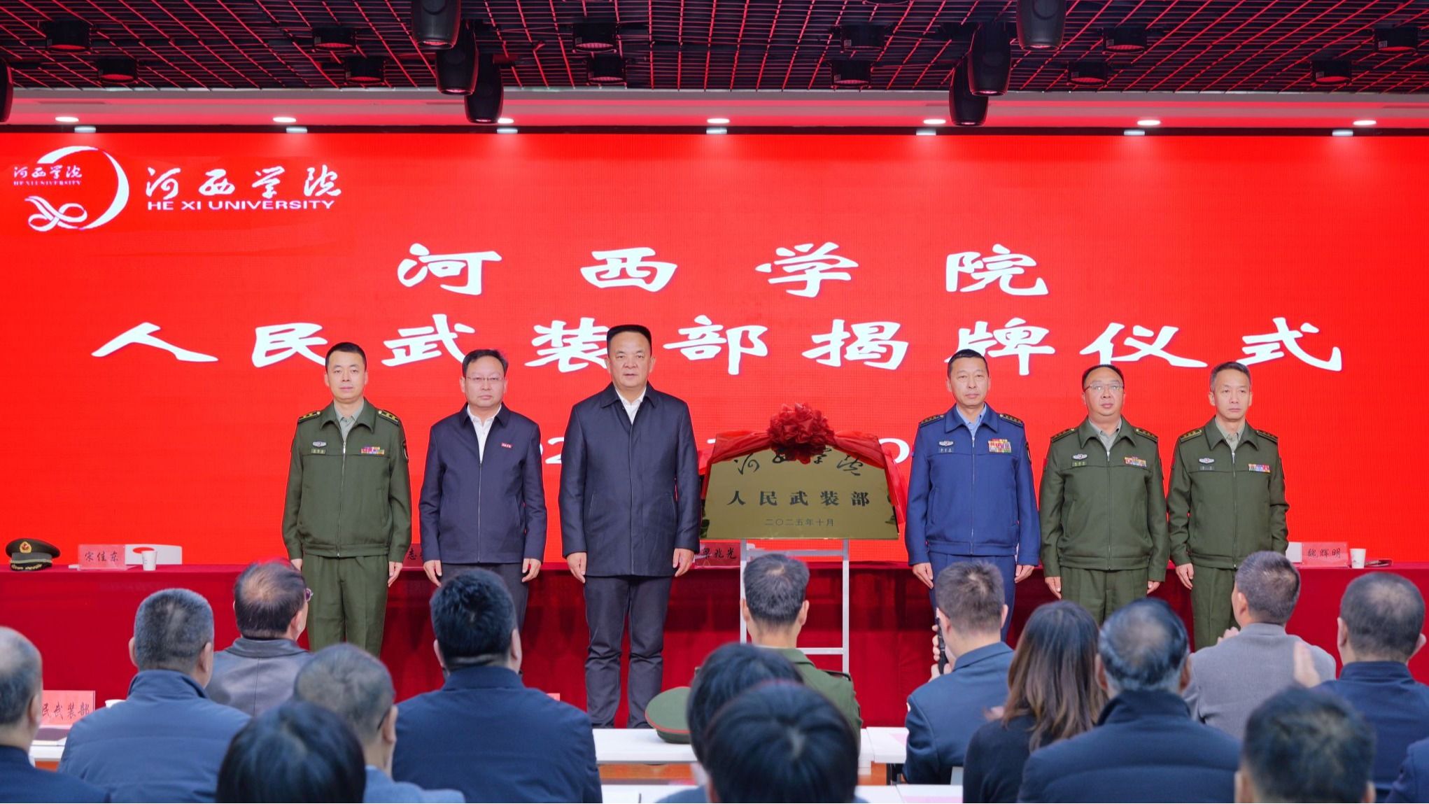 11月10日,河西学院人民武装部揭牌仪式在学生发展中心四楼多功能厅举行。张掖军分区大校司令员李子冬、学校党委书记梁兆光、张掖军分区动员处上校处长魏辉明、甘州区人民武装部上校政治委员李飞出席。学校党委常委、副校长唐志强致辞。
