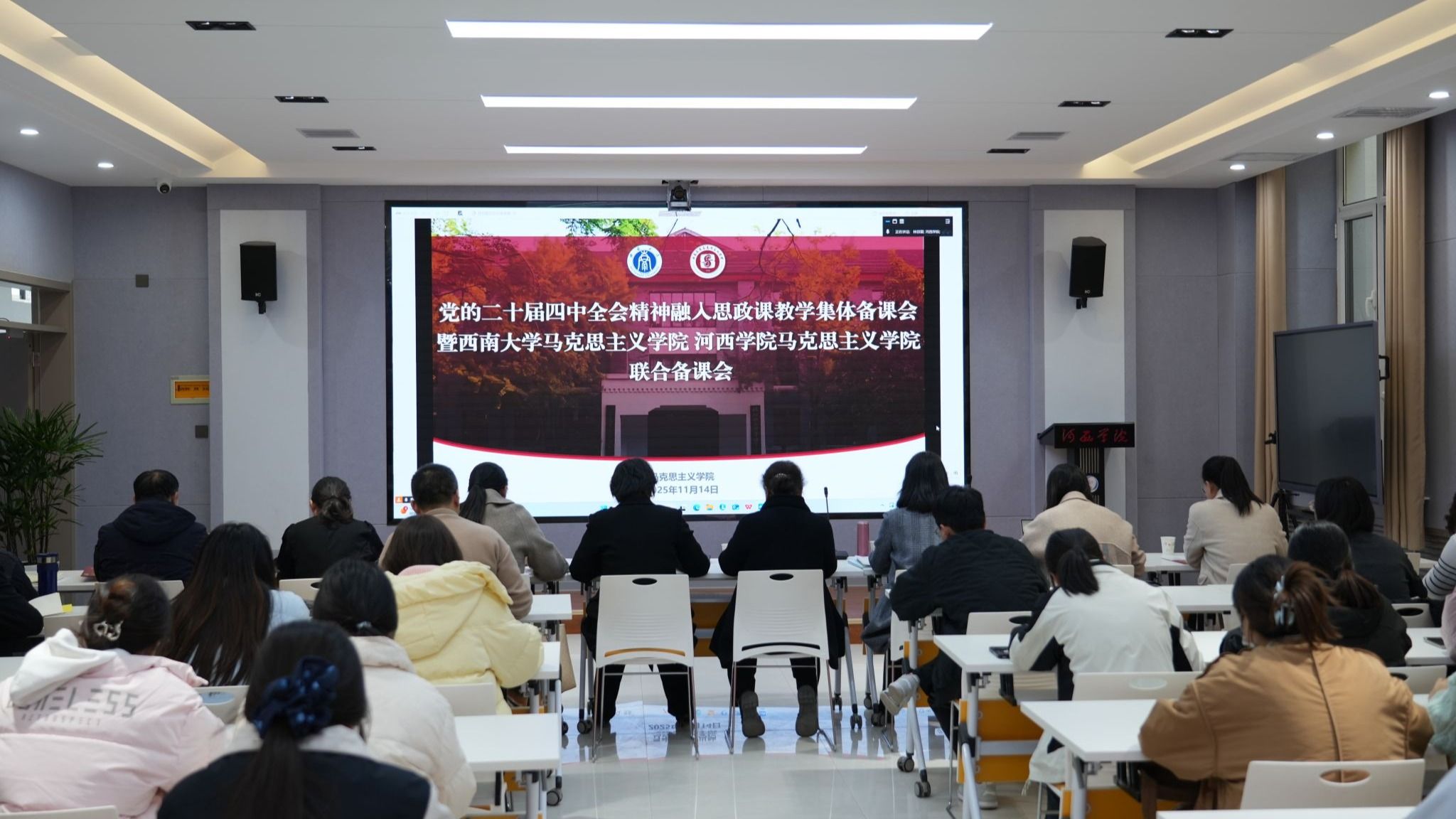 11月14日,西南大学马克思主义学院与河西学院马克思主义学院举办“党的二十届四中全会精神融入思政课教学”线上联动备课会。会议由西南大学马克思主义学院副院长唐斌教授主持。