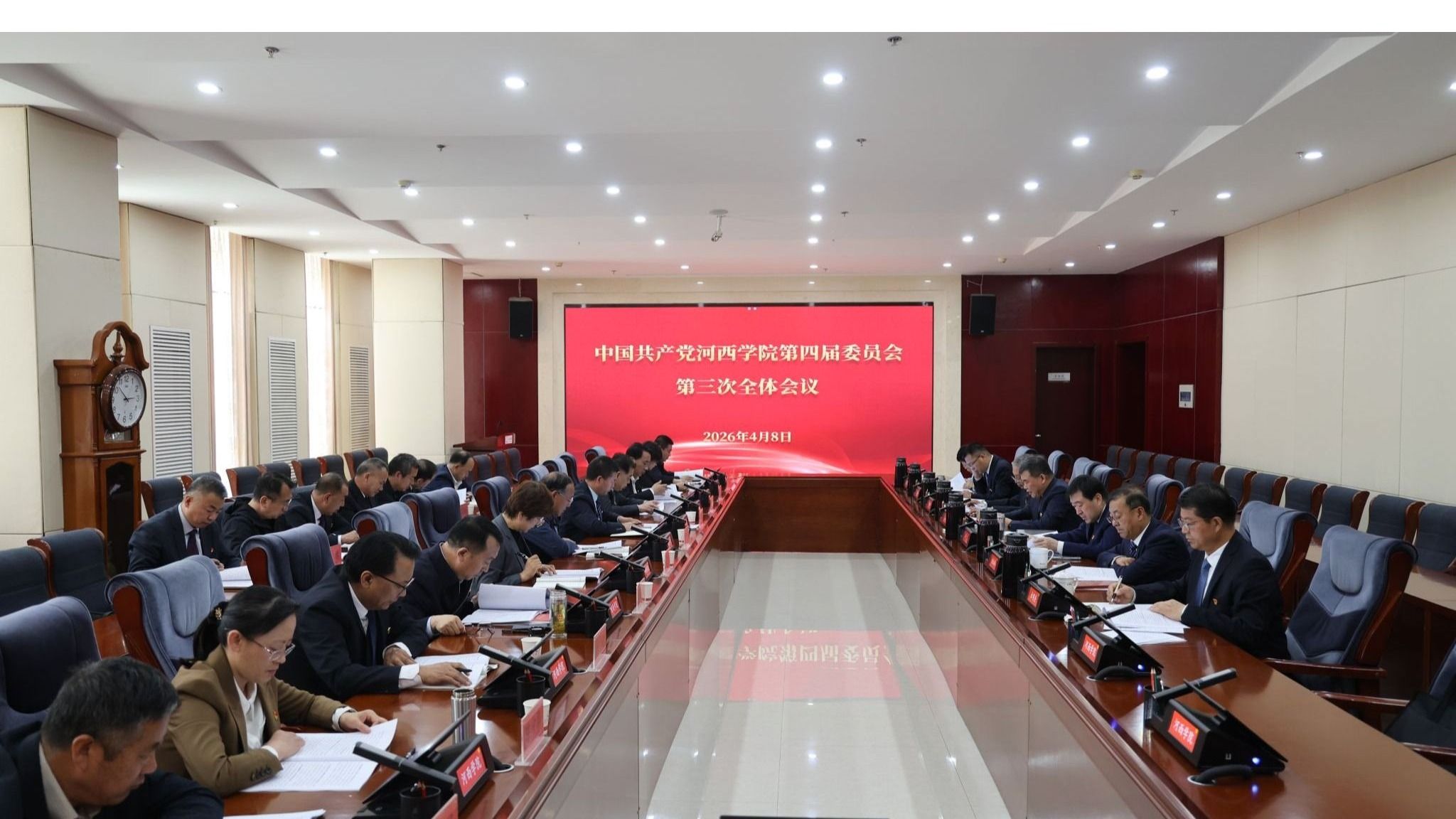 4月8日,中国共产党河西学院第四届委员会第三次全体会议召开。校党委委员出席会议,纪委委员列席会议。 会议听取并审议通过了王向阳同志受校党委常委会委托所作的《2025年党委常委会工作报告》,通报了《中共河西学院委员会2025年度民主生活会暨省委巡视反馈意见整改专题民主生活会召开情况》,安排部署2026年学校重点工作。 会议充分肯定了学校党委常委会2025年的工作,一致认为,学校党委坚持以习近平新时代中国特色社会主义思想为指导,...