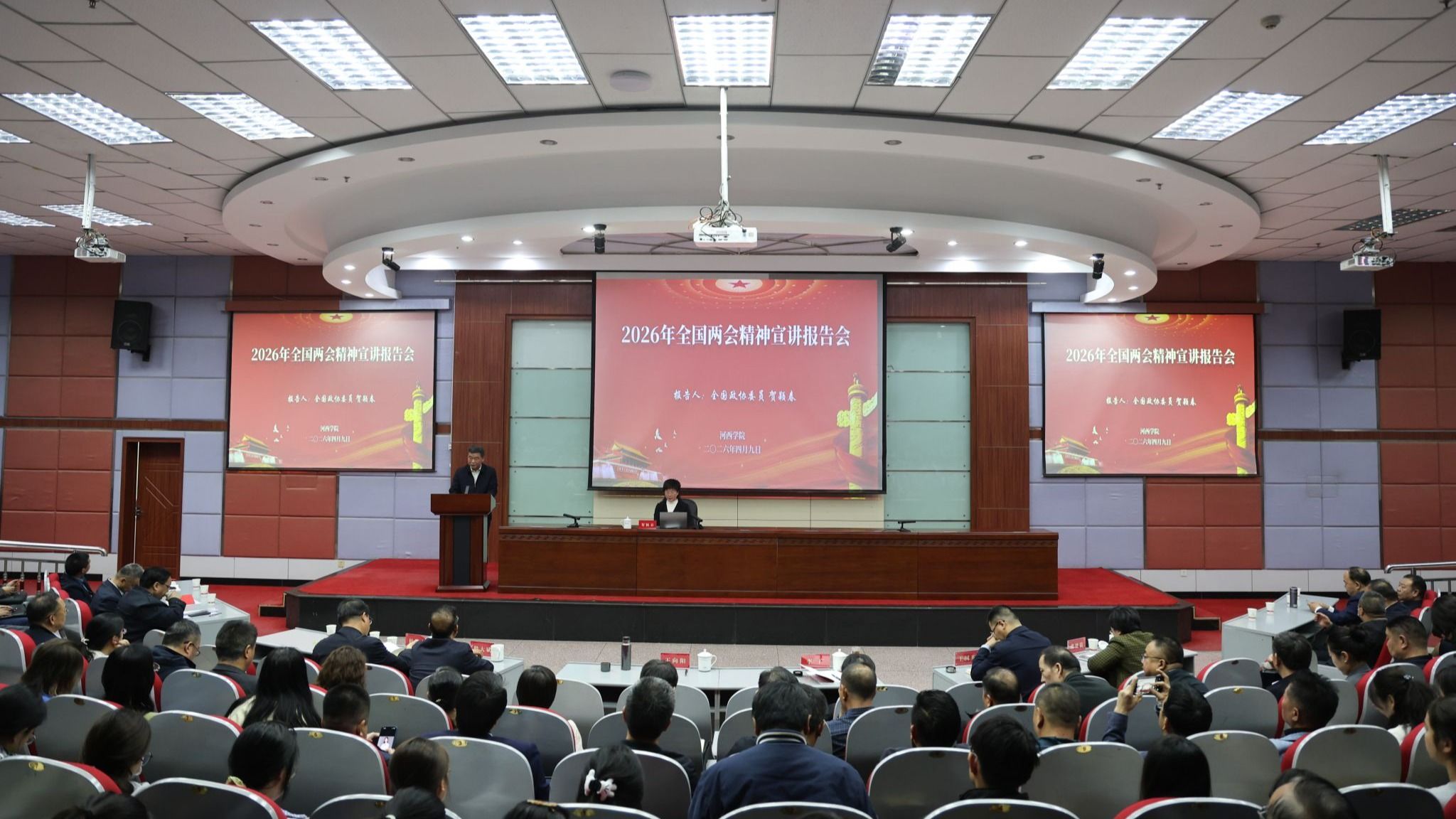 4月9日,学校举办2026年全国两会精神宣讲报告会。全国政协委员、张掖市肃南三中副校长贺颖春应邀作专题宣讲。党委书记王向阳主持并讲话。 贺颖春以“春启新程绘蓝图 同心奋进新征程”为题,围绕习近平总书记在全国两会上的重要讲话、政府工作报告、新颁布法律法规、教育强国建设的新部署新要求,结合34年民族地区基础教育一线实践与全国政协履职经历,系统梳理和全方位解读了2026年全国两会精神。 王向阳指出,2026年全国两会是在“...