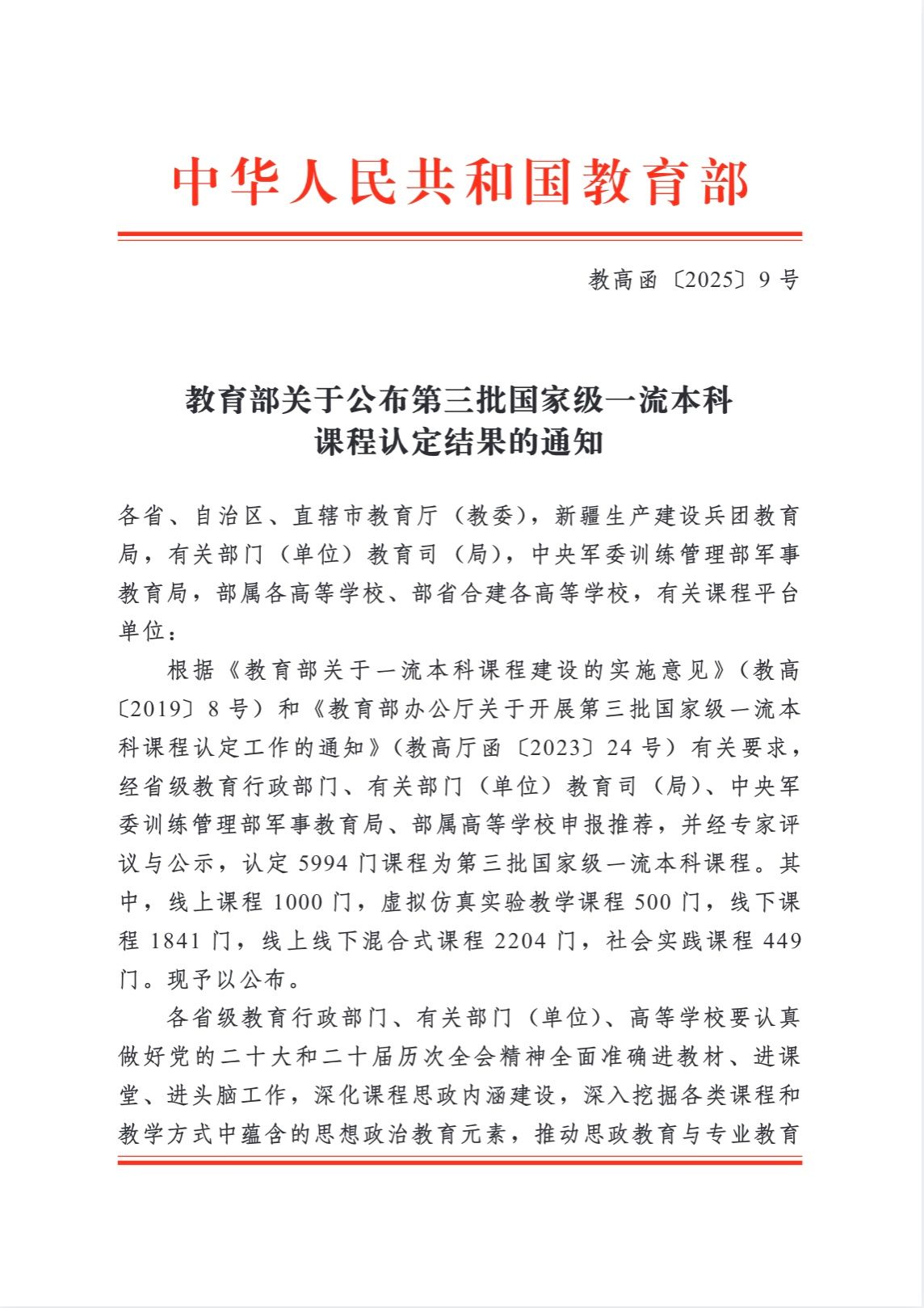 近日,教育部公布第三批国家级一流本科课程认定结果,学校再添5门国家级一流本科课程,标志着学校在课程建设与教育教学改革方面取得阶段性重要成果,一流本科教育建设迈上新台阶。本次入选的课程涵盖线上、线上线下混合式以及线下三种类型,由肖让教授主持的《工程测量》和郑凤莉教授主持的《基础护理学》获评线上一流课程;徐新建教授主持的《物理化学》获评线上线下混合式一流课程;雷玉明教授主持的《种子植物病理学》和高天霞教授主持的《...