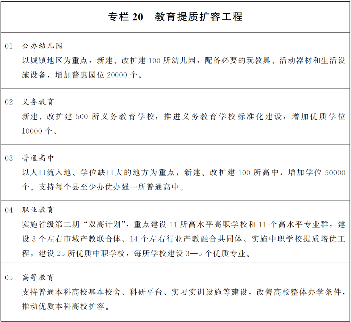统筹抓好教育、培训和就业,提高教育供给与人才需求匹配度,健全终身职业技能培训制度,开展大规模职业技能培训。推动技工教育高质量特色发展。加强公共实训基地、高技能人才培训基地建设,促进培训资源共建共享。突出企业人才培养主体作用,鼓励企业建设职业技能培训基地。推行项目化培训模式,提高职业技能培训质效。完善职业技能竞赛体系。拓宽技能人才职业发展通道,建立健全技能人才评价体系。打造覆盖全民、贯穿全程、辐射全域、便捷高效的全方位就业公共服务体系,提升劳动力市场匹配效率。完善基层就业公共服务平台功能,促进服务资源向基层延伸、向农村覆盖、向边远地区和就业困难群体倾斜。推行数字赋能的就业公共服务模式。强化择业和用人观念引导。加强人力资源市场体系建设,推动人力资源服务业创新发展、扩大服务供给。