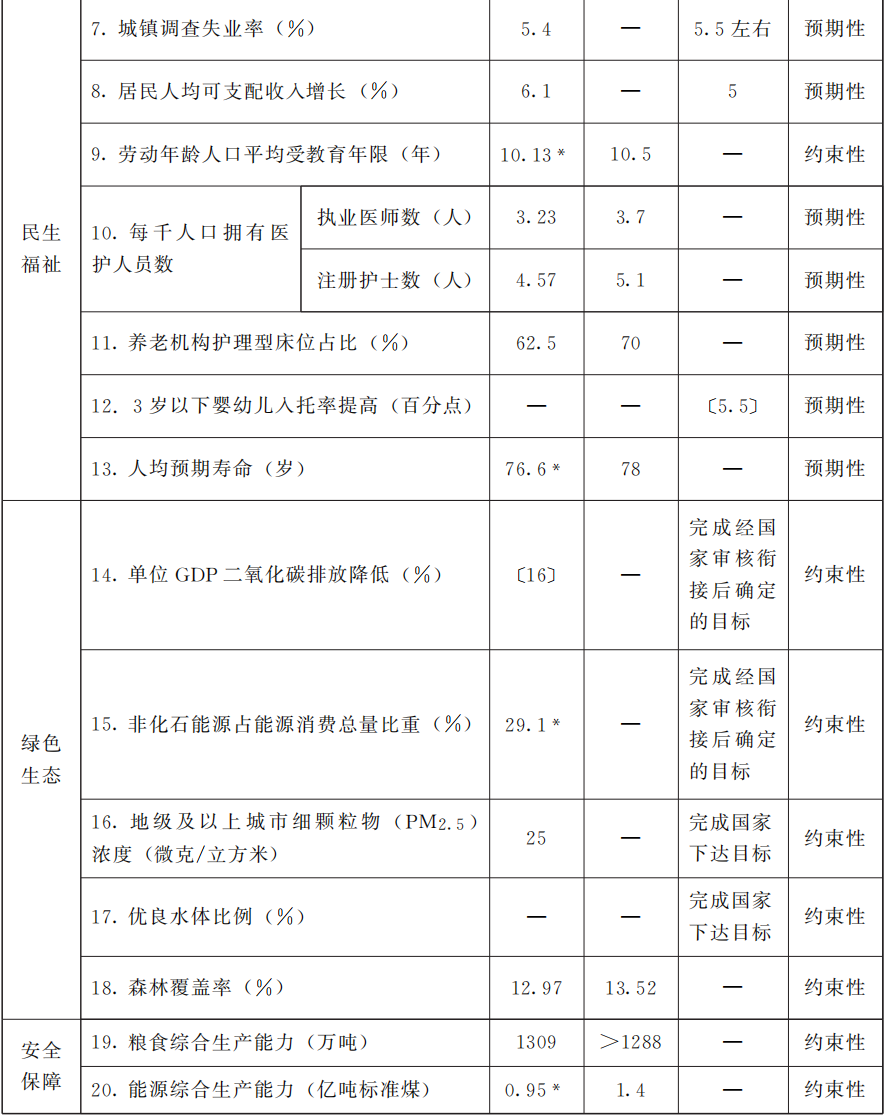 各地区、各部门要根据职责分工,制定本规划涉及本地区、本部门的主要目标任务实施方案。对本规划确定的约束性指标、重大工程、重大项目和公共服务、生态环保、安全保障等领域任务,合理配置公共资源、积极引导社会资源,强化责任分解落实,确保如期完成。对本规划提出的预期性指标和产业发展、结构调整等领域任务,创造良好政策环境、体制环境、法治环境和营商环境,重点发挥好经营主体作用,全力推动实现。年度计划要贯彻本规划提出的发展目标和重点任务,将本规划确定的主要指标分解纳入年度计划指标体系,设置年度目标,做好年度间综合平衡,并根据本规划确定的重点任务合理确定年度工作重点。