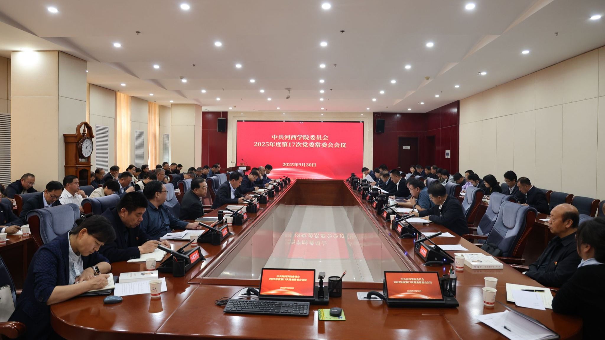 会议传达学习了习近平总书记在听取新疆维吾尔自治区党委和政府工作汇报时的重要讲话精神、在参观新疆维吾尔自治区成立70周年主题成就展时的重要指示精神,《中共中央关于印发〈中国共产党思想政治工作条例〉的通知》《中共中央关于印发〈中国人民抗日战争暨世界反法西斯战争胜利80周年纪念活动总结报告〉的通知》《教育部民族教育司、新疆维吾尔自治区教育厅、新疆生产建设兵团教育局向河西学院发来的感谢信》,全省校园安全暨教育领域群众身边不正之风和腐败问题专项整治工作调度会会议精神,深入贯彻中央八项规定精神学习教育有关文件精神,研究我校贯彻落实意见,安排部署国庆中秋假期校园安全和近期重点工作。