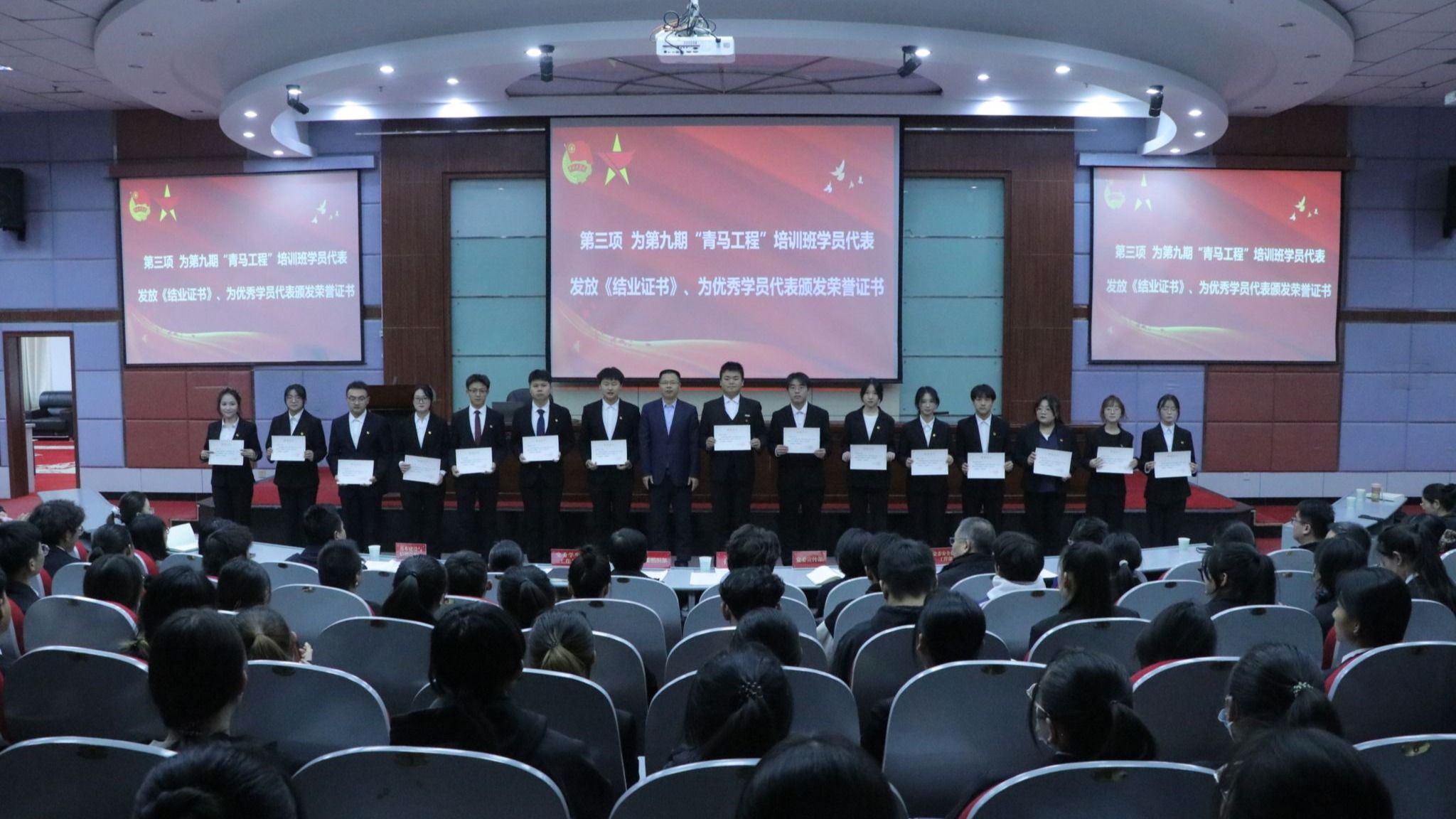 会上,为第九期“青马班”学员代表颁发了《结业证书》;对第九期“青马班”优秀学员、10月校园健步走活动优秀学生进行了表彰;获奖学生代表和第十期“青马班”学员代表现场发言,并集体宣誓;团委负责人对第十期“青马工程”培训班作了安排。