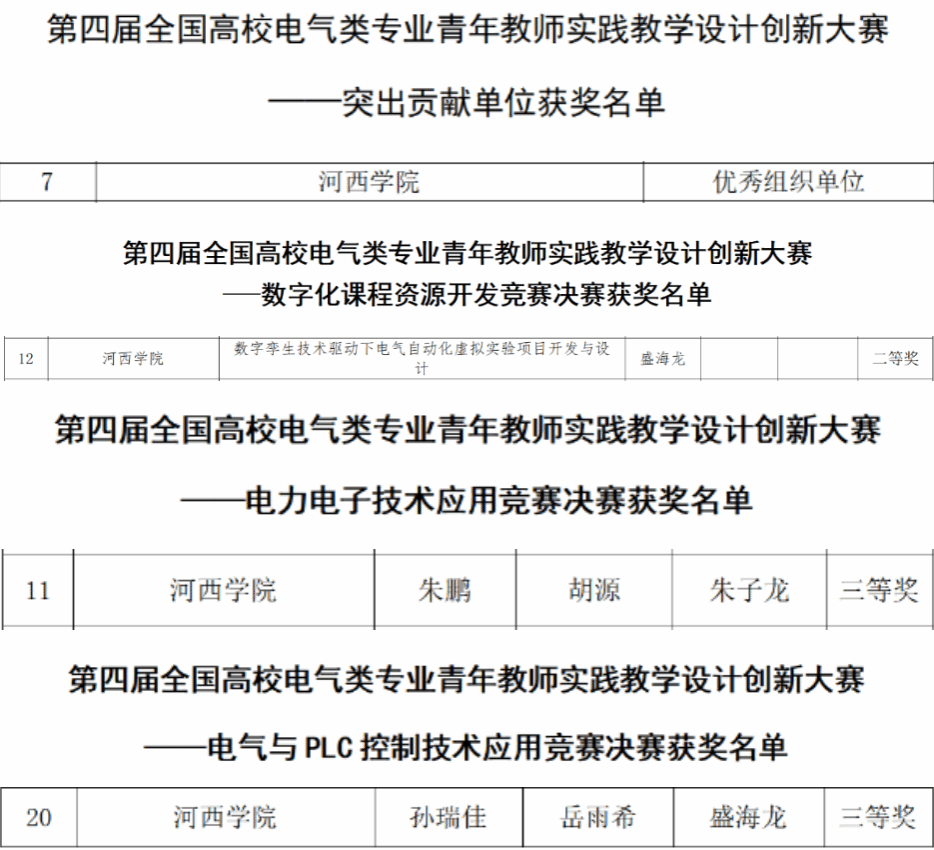 我校在此次大赛中表现突出,获评“优秀组织单位”。物理与机电工程学院教师盛海龙设计的实践教学方案《数字孪生技术驱动下电气自动化虚拟实验项目开发与设计》荣获全国二等奖,该方案以数字孪生技术为核心,注重培养学生工程实践能力与创新思维,设计新颖,在激烈竞争中脱颖而出。此外,由盛海龙、朱鹏两位老师分别指导的学生团队,在“电气与PLC控制技术应用”和“电力电子技术应用”赛项中表现优异,分获全国三等奖。