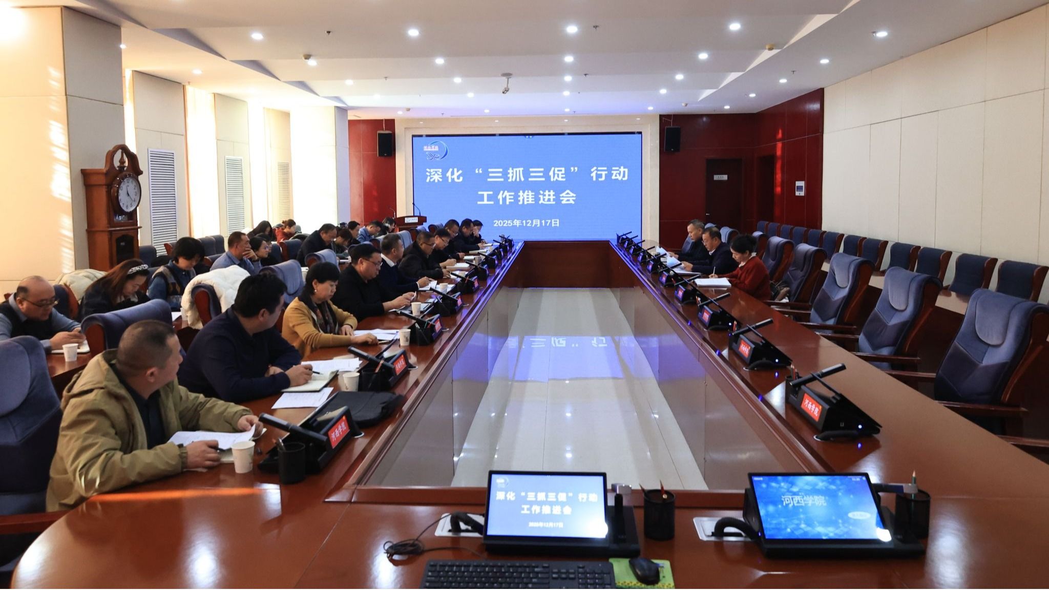 12月17日,学校召开深化“三抓三促”行动工作推进会,传达学习省委常委、省纪委书记、省“三抓三促”行动专项工作机制召集人靳国卫在专题听取省“三抓三促”办公室工作汇报时的讲话,全面总结2025年工作成效,部署当前及明年重点任务。党委常委、纪委书记、学校“三抓三促”行动专项工作机制办公室主任殷大斌主持会议并讲话。 会议认为,今年以来,全校上下锚定深化“三抓三促”行动核心要求,坚持融合结合、统筹推进,抓学习促提升的思想根基更牢固、...